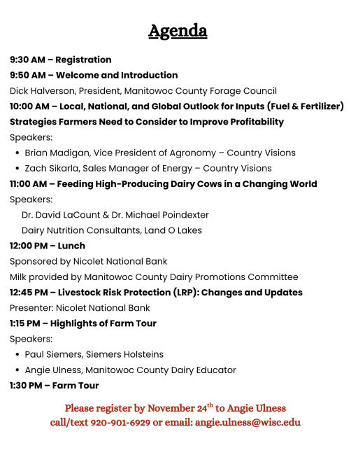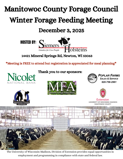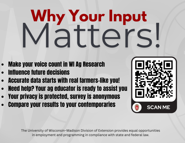 Please make requests for reasonable accommodations to ensure equal access to educational programs as early as possible preceding the scheduled program, service, or activity. For communicative accommodations in languages other than English, please contact oaic@extension.wisc.edu. For communicative accommodations based on a disability, please contact Heather Lipinski Stelljes at: heather.stelljes@wisc.edu for the public.