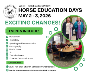 WI 4-H Horse Education Days, Sponsored by the WI 4-H Horse Association
