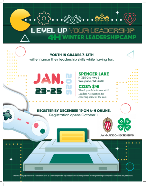 Cost: $95.00 (Thank you Manitowoc 4-H Leaders Association for covering some of the cost)